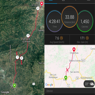 Todo muy bonito en terracería, con bajadas y terreno más o menos plano con un último descenso para llegar a Santa Rosa de la Cuesta, Chiquimula, donde nos rehidratamos de nuevo, antes de continuar con un descenso vertiginoso.