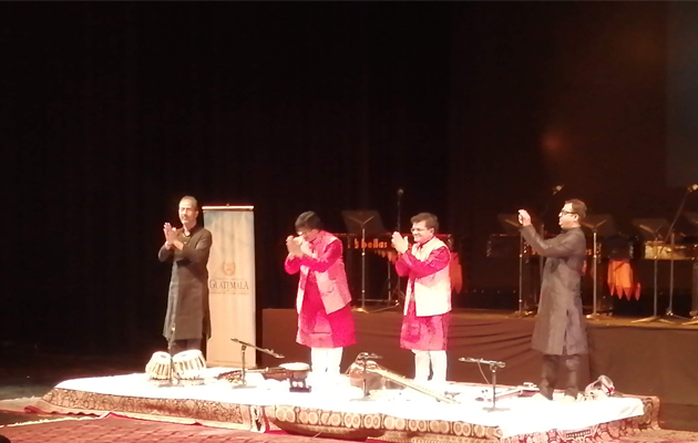 Llegó la hora del concierto del cuarteto de La India con sus instrumentos especiales: tres de cuerdas y una percusión. Me hubiera gustado que nos dijeran un poco más despacio el nombre de cada instrumento, por eso no se los puedo decir.