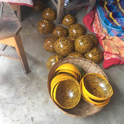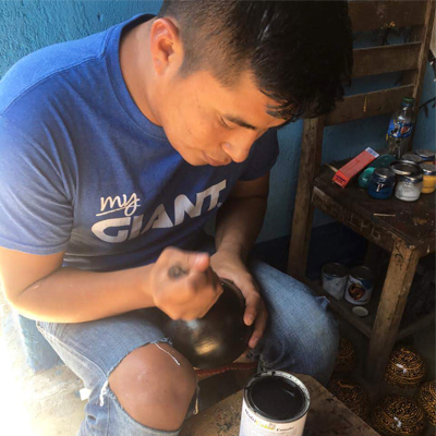 También pude apreciar el momento en el que un joven artesano con su navaja y de manera hábil realizaba el diseño elegido a un morro pintado de color negro.