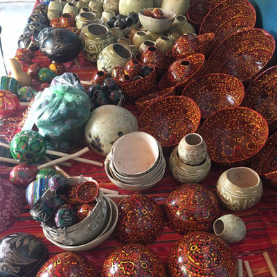 Nuestro guía de Jaguar Travel, César, nos iba explicando que ese árbol era el que brindaba la materia prima para elaborar pequeños jarrones, platillos, incluso unas cantimploras muy básicas.