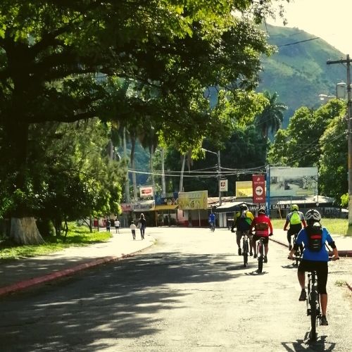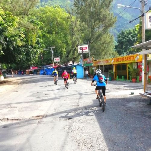 Después de mucho batallar con las subidas llegamos al conocido punto como «Llano de las ánimas» para descansar un poco y rehidratarnos en una tienda de barrio. Después, todo fue bajada para llegar a orillas del Lago de Amatitlán.