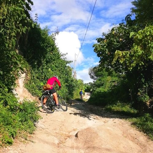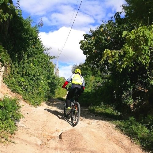 Nos desviamos de la carretera principal, la que conduce hacia Amatitlán para ingresar a una aldea y empezar una serie de cuestas de terracería que me sacaron el jugo. Algunas las logré conquistar, pero estos meses de inactividad me pasaron la factura porque tuve que empujar la bici en repetidas ocasiones.