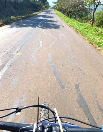 Al salir de este paso, vino una etapa llena de velocidad, emoción y muchísima velocidad. Salimos a la parte del asfalto pedalear ya no era parte del trabajo, pero sí lo era controlar la bicicleta en las curvas pronunciadas y saber frenar.