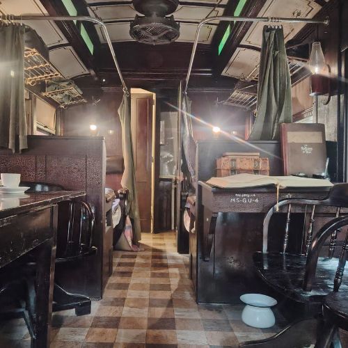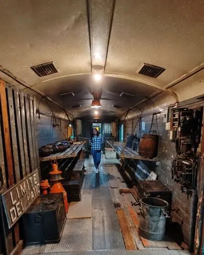 Si se cuenta con suerte, puedes entrar a los vagones que cuentan en su interior con pesadas herramientas, en otro hay mobiliario de la época como mesas y un minibar, también hay un camarote que utilizaban los más encumbrados pasajeros porque contaba con cama para descansar durante el viaje.